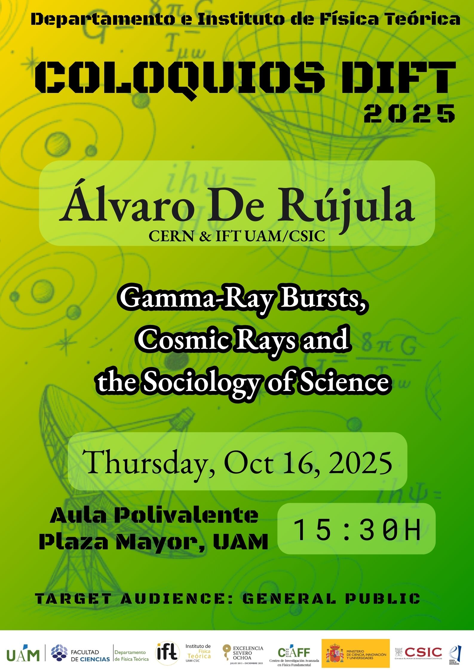 Speaker: Álvaro de Rújula from IFT & CERN